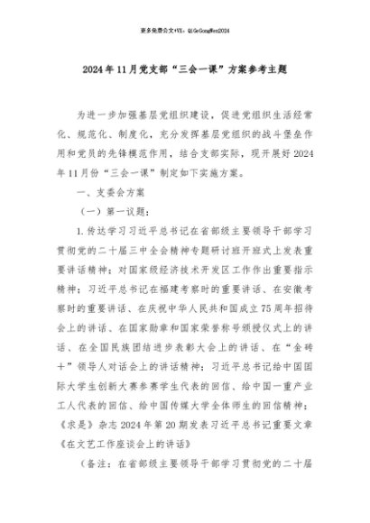 / 【七哥公文】2024年:2024年11月党支部“三会一课”方案参考主题+更多免费公文+VX:QiGeGongWen2024