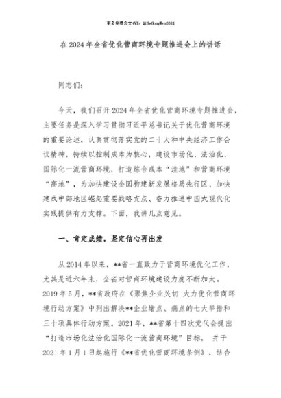 / 【七哥公文】2024年:在2024年全省优化营商环境专题推进会上的讲话+更多免费公文+VX:QiGeGongWen2024