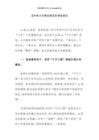 / 【七哥公文】2024年:县和美乡村建设情况的调查报告+更多免费公文+VX:QiGeGongWen2024
