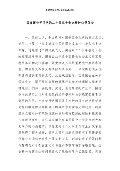 / 【七哥公文】2024年:国资国企学习党的二十届三中全会精神心得体会+更多免费公文+VX:QiGeGongWen2024