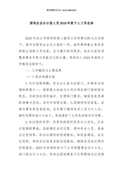 / 【七哥公文】2024年:国有企业办公室人员2024年度个人工作总结+更多免费公文+VX:QiGeGongWen2024