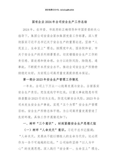 / 【七哥公文】2024年:国有企业2024年全司安全生产工作总结+更多免费公文+VX:QiGeGongWen2024