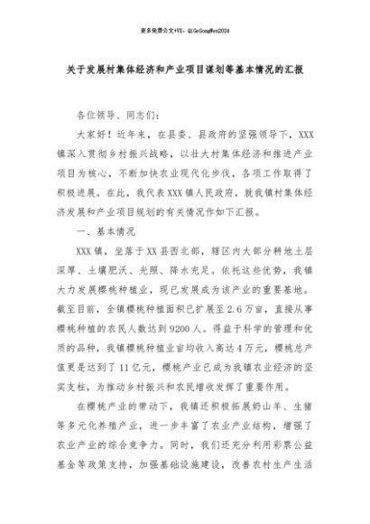 / 【七哥公文】2024年:关于发展村集体经济和产业项目谋划等基本情况的汇报+更多免费公文+VX:QiGeGongWen2024