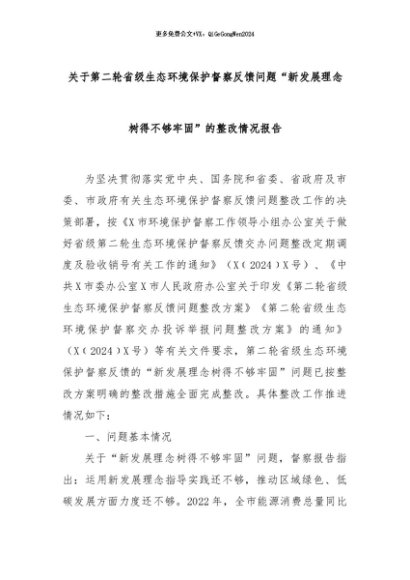 【七哥公文】2024年:关于第二轮省级生态环境保护督察反馈问题“新发展理念树得不够牢固”的整改情况报告+更多免费公文+VX:QiGeGongWen2024