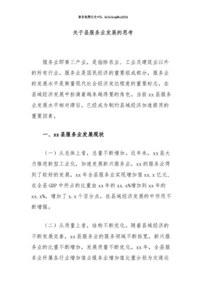 / 【七哥公文】2024年:关于县服务业发展的思考+更多免费公文+VX:QiGeGongWen2024