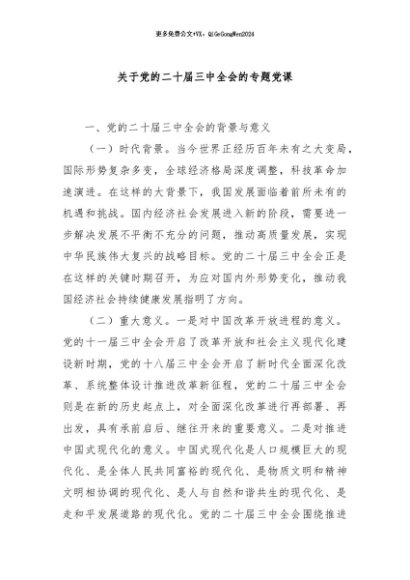 / 【七哥公文】2024年:关于党的二十届三中全会的专题党课+更多免费公文+VX:QiGeGongWen2024