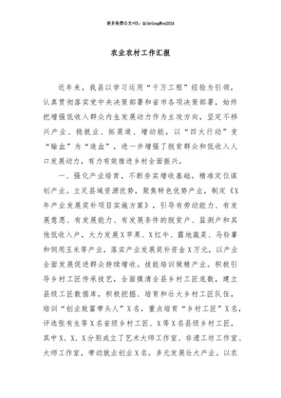 / 【七哥公文】2024年:农业农村工作汇报+更多免费公文+VX:QiGeGongWen2024
