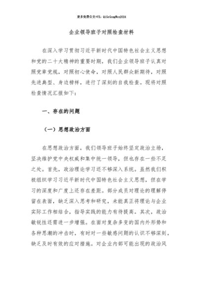 【七哥公文】2024年:企业领导班子对照检查材料+更多免费公文+VX:QiGeGongWen2024