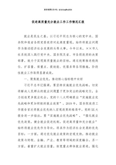 / 【七哥公文】2024年:促进高质量充分就业工作工作情况汇报+更多免费公文+VX:QiGeGongWen2024