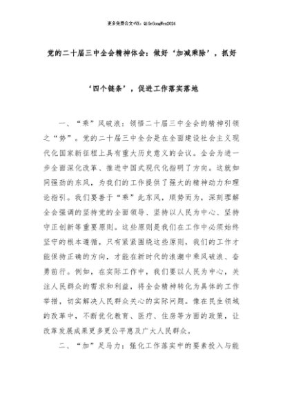 【七哥公文】2024年:党的二十届三中全会精神体会:做好‘加减乘除’,抓好‘四个链条’,促进工作落实落地+更多免费公文+VX:QiGeGongWen2024