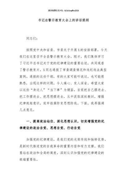 / 【七哥公文】2024年:书记在警示教育大会上的讲话提纲+更多免费公文+VX:QiGeGongWen2024