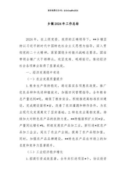 / 【七哥公文】2024年:乡镇2024年工作总结+更多免费公文+VX:QiGeGongWen2024