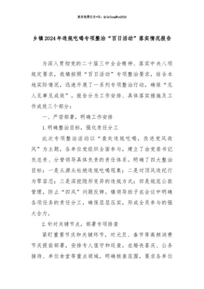 【七哥公文】2024年:乡镇2024年违规吃喝专项整治“百日活动”落实情况报告+更多免费公文+VX:QiGeGongWen2024