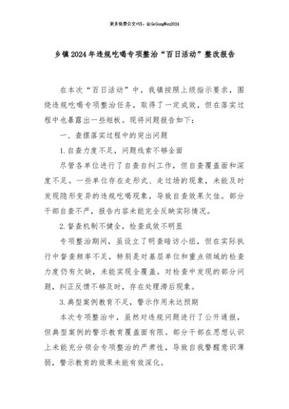 【七哥公文】2024年:乡镇2024年违规吃喝专项整治“百日活动”整改报告+更多免费公文+VX:QiGeGongWen2024