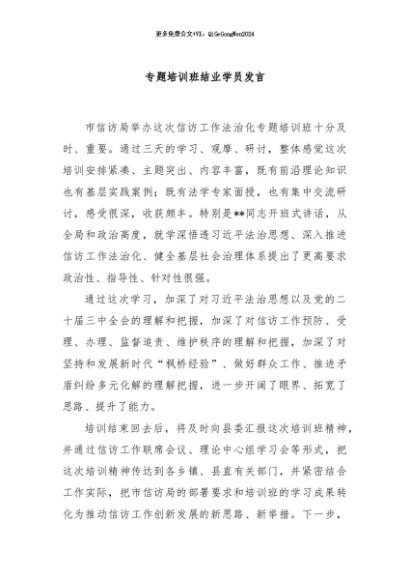 / 【七哥公文】2024年:专题培训班结业学员发言+更多免费公文+VX:QiGeGongWen2024