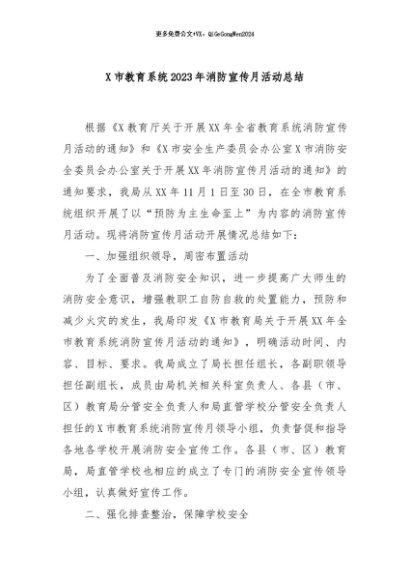 / 【七哥公文】2024年:X市教育系统2023年消防宣传月活动总结+更多免费公文+VX:QiGeGongWen2024