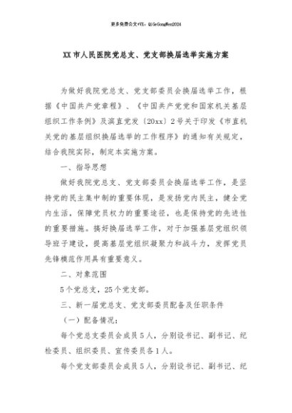 / 【七哥公文】2024年:XX市人民医院党总支、党支部换届选举实施方案+更多免费公文+VX:QiGeGongWen2024