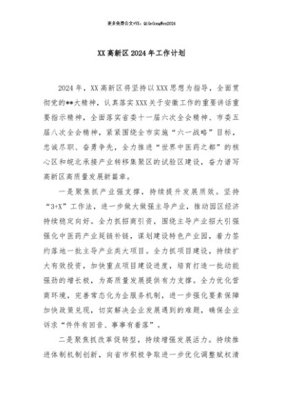 / 【七哥公文】2024年:XX高新区2024年工作计划+更多免费公文+VX:QiGeGongWen2024