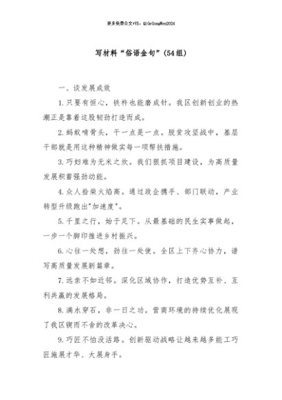 / 【七哥公文】2024年:(54组)写材料“俗语金句”+更多免费公文+VX:QiGeGongWen2024