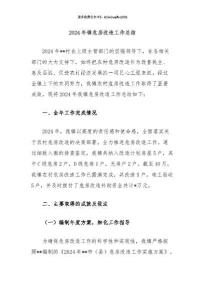 / 【七哥公文】2024年:2024年镇危房改造工作总结+更多免费公文+VX:QiGeGongWen2024