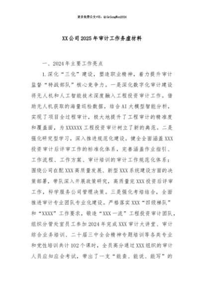 / 【七哥公文】2024年:XX公司2025年审计工作务虚材料+更多免费公文+VX:QiGeGongWen2024