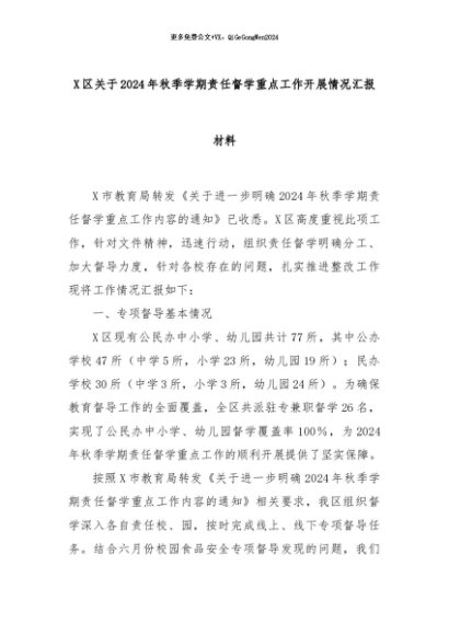 【七哥公文】2024年:X区关于2024年秋季学期责任督学重点工作开展情况汇报材料+更多免费公文+VX:QiGeGongWen2024