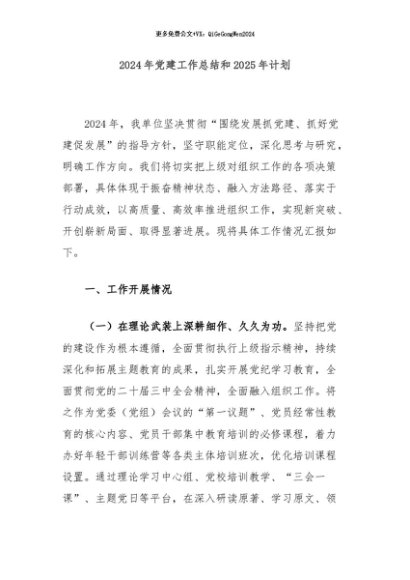 / 【七哥公文】2024年:2024年党建工作总结和2025年计划+更多免费公文+VX:QiGeGongWen2024