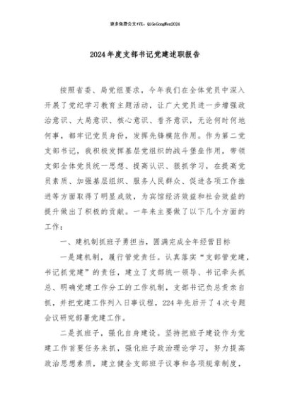 / 【七哥公文】2024年:2024年度支部书记党建述职报告+更多免费公文+VX:QiGeGongWen2024