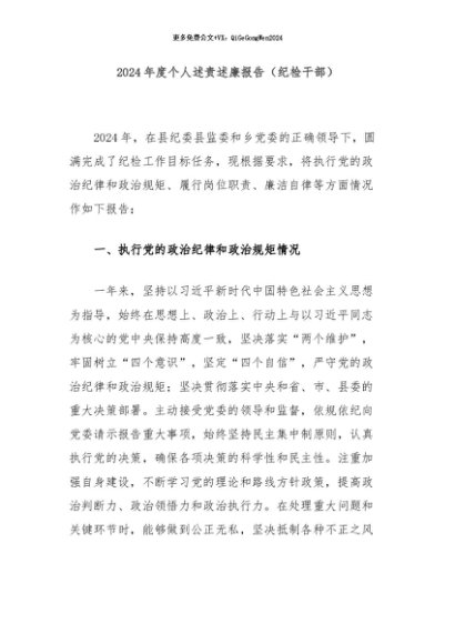 / 【七哥公文】2024年:2024年度个人述责述廉报告(纪检干部)+更多免费公文+VX:QiGeGongWen2024