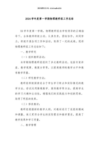 / 【七哥公文】2024年:2024学年度第一学期物理教研组工作总结+更多免费公文+VX:QiGeGongWen2024