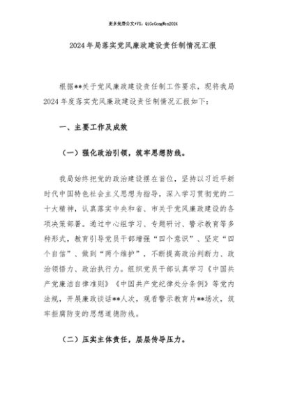 / 【七哥公文】2024年:2024年局落实党风廉政建设责任制情况汇报+更多免费公文+VX:QiGeGongWen2024