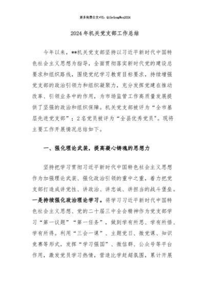 / 【七哥公文】2024年:2024年机关党支部工作总结+更多免费公文+VX:QiGeGongWen2024