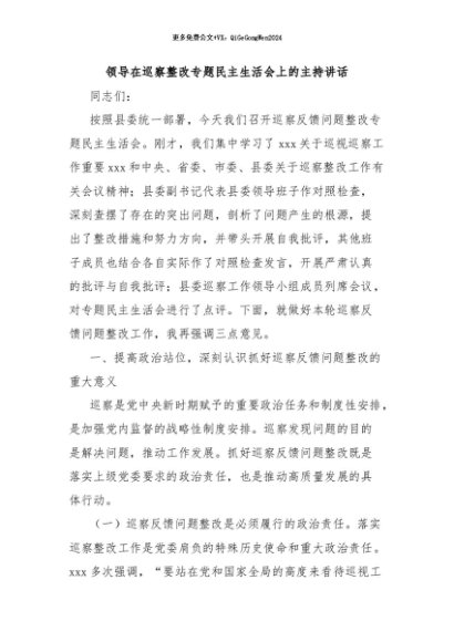/ 【七哥公文】2024年:领导在巡察整改专题民主生活会上的主持讲话+更多免费公文+VX:QiGeGongWen2024