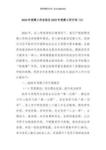 【七哥公文】2024年:2024年党建工作总结及2025年党建工作计划(2)+更多免费公文+VX:QiGeGongWen2024