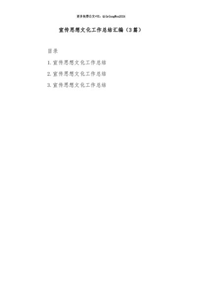 / 【七哥公文】2024年:(3篇)宣传思想文化工作总结汇编+更多免费公文+VX:QiGeGongWen2024