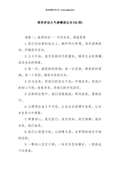 / 【七哥公文】2024年:(45例)领导讲话大气磅礴排比句+更多免费公文+VX:QiGeGongWen2024