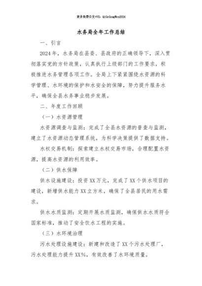 / 【七哥公文】2024年:水务局全年工作总结+更多免费公文+VX:QiGeGongWen2024