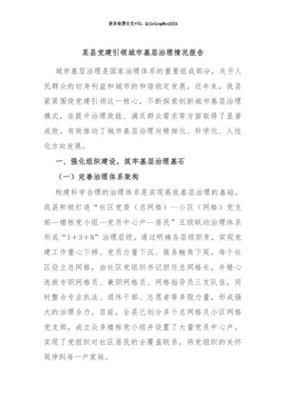 / 【七哥公文】2024年:某县党建引领城市基层治理情况报告+更多免费公文+VX:QiGeGongWen2024