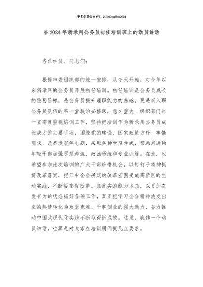/ 【七哥公文】2024年:在2024年新录用公务员初任培训班上的动员讲话+更多免费公文+VX:QiGeGongWen2024