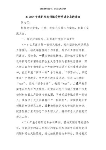 / 【七哥公文】2024年:在2024年意识形态领域分析研讨会上的发言+更多免费公文+VX:QiGeGongWen2024