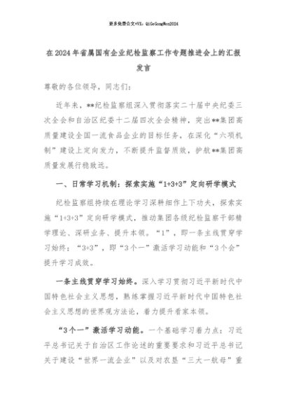 【七哥公文】2024年:在2024年省属国有企业纪检监察工作专题推进会上的汇报发言+更多免费公文+VX:QiGeGongWen2024