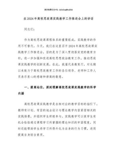 / 【七哥公文】2024年:在2024年高校思政课实践教学工作推进会上的讲话+更多免费公文+VX:QiGeGongWen2024