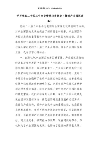 【七哥公文】2024年:学习党的二十届三中全会精神心得体会(推动产业园区改革)+更多免费公文+VX:QiGeGongWen2024