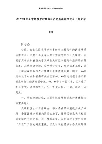 【七哥公文】2024年:在2024年全市新型农村集体经济发展现场推进会上的讲话(2)+更多免费公文+VX:QiGeGongWen2024
