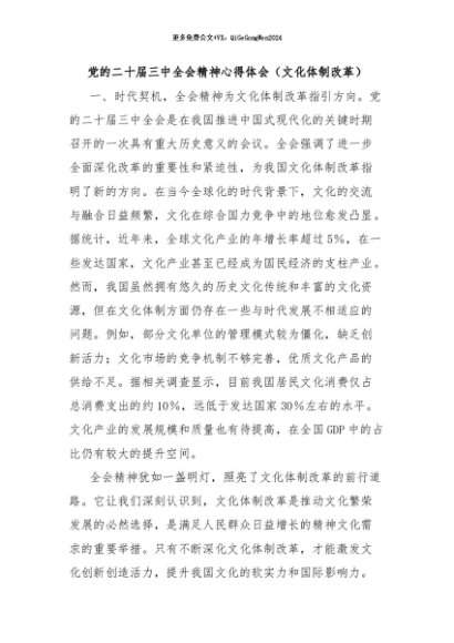 / 【七哥公文】2024年:党的二十届三中全会精神心得体会(文化体制改革)+更多免费公文+VX:QiGeGongWen2024