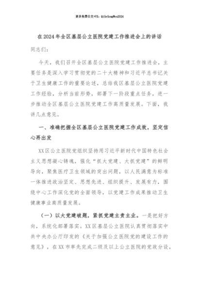 【七哥公文】2024年:在2024年全区基层公立医院党建工作推进会上的讲话+更多免费公文+VX:QiGeGongWen2024