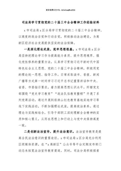 / 【七哥公文】2024年:司法局学习贯彻党的二十届三中全会精神工作经验材料+更多免费公文+VX:QiGeGongWen2024
