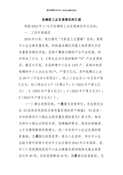 / 【七哥公文】2024年:县镇级工业发展情况的汇报+更多免费公文+VX:QiGeGongWen2024