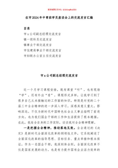 【七哥公文】2024年:(5篇)在市2024年中青班学员座谈会上的交流发言汇编+更多免费公文+VX:QiGeGongWen2024