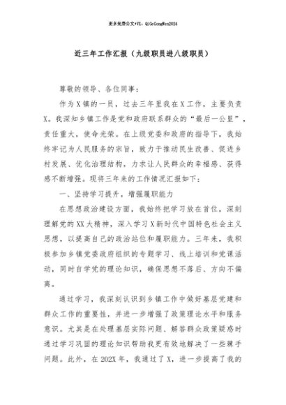 / 【七哥公文】2024年:近三年工作汇报(九级职员进八级职员)+更多免费公文+VX:QiGeGongWen2024